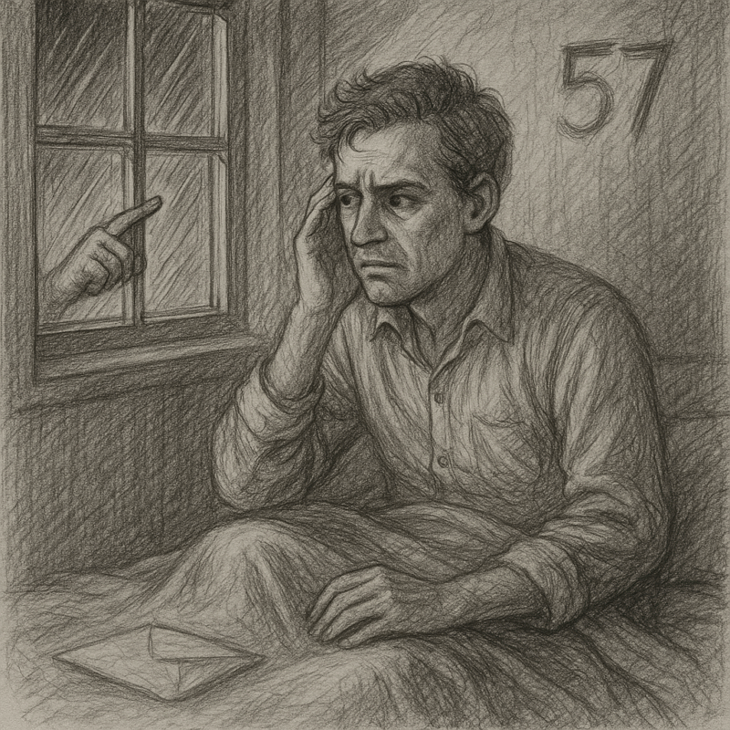 রুদ্র সারারাত ঘুমাতে পারেনি। জানালার কাঁচে সেই টোকা দেওয়ার শব্দ, দেয়ালে ভেসে ওঠা “৫৭” সংখ্যাটি, আর সবচেয়ে অদ্ভুত—চিঠির হঠাৎ গায়েব হয়ে যাওয়া—সবকিছু মিলিয়ে তার ভেতরে জন্ম নিয়েছিল এক গভীর আতঙ্ক।