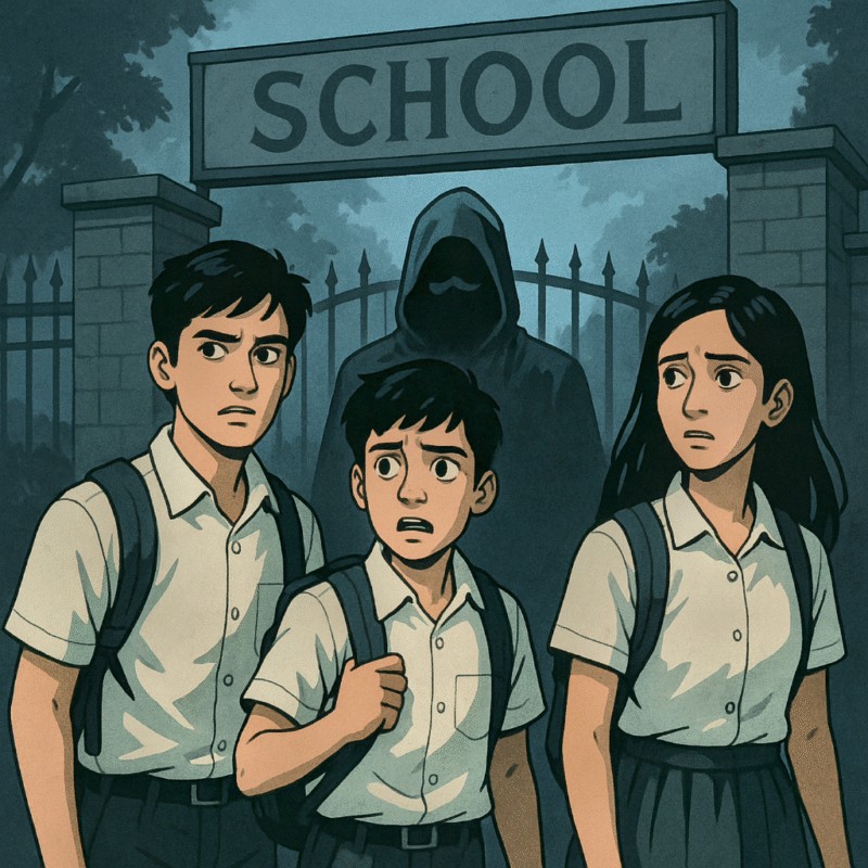 হঠাৎ **জারার ফোনে একটি অজানা নম্বর থেকে MMS আসে**—একটি **ছবি** যেখানে **তাদের তিনজনকে স্কুলের গেটে দাঁড়িয়ে থাকতে দেখা যাচ্ছে**, আর পিছনে **একজন কালো হুড পরা লোক** দাঁড়িয়ে!